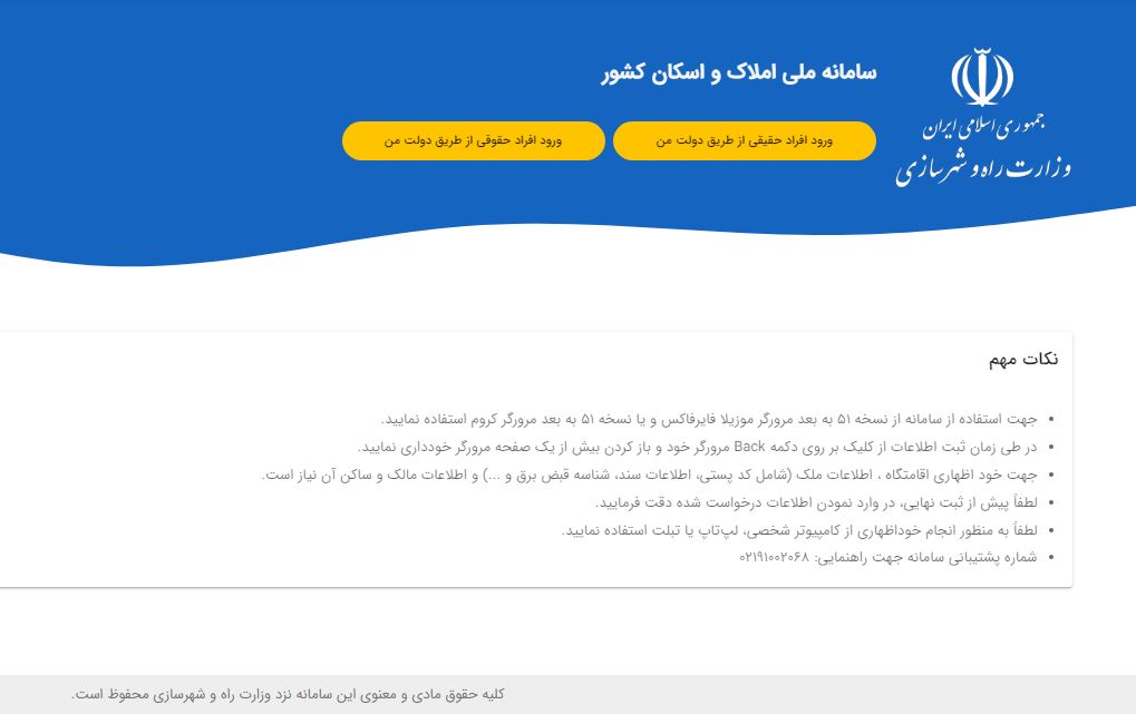 ثبت اقامتگاه در سامانه املاک و اسکان برای دسترسی به خدمات زیر ضروری است:
