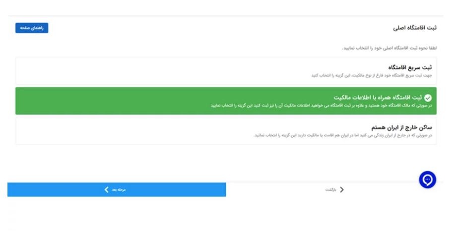 نکته: امکان ثبت چند اقامتگاه برای مالکان چند ملک یا افرادی که در آدرسهای مختلف سکونت داشتهاند، وجود دارد.
